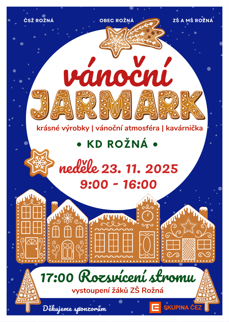 Akce proběhne: Vánoční jarmark nabízí krásné výrobky, vánoční atmosféru a kavárničku. Akce se koná v KD Rožná, neděle 23. 11. 2025 od 9:00 do 16:00. Ve 17:00 proběhne rozsvícení stromu s vystoupením žáků ZŠ Rožná. |